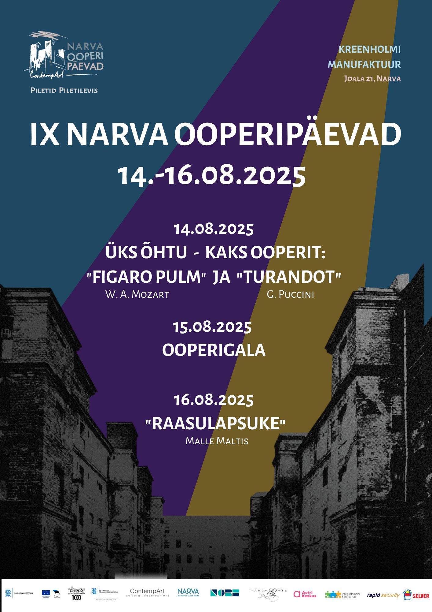 С 14 по 16 августа в Нарве в девятый раз пройдут Дни оперы, или Narva Ooperipäevad. Организаторы этого масштабного и ставшего уже традиционным международного фестиваля современной классической музыки подчеркивают, что их цель – открыть красоту оперы самым разным слушателям, разным по социальному статусу, возрасту, музыкальной подготовке. Вот почему на вечерние спектакли ждут не только взрослых, но и детей, и подростков с их родителями.