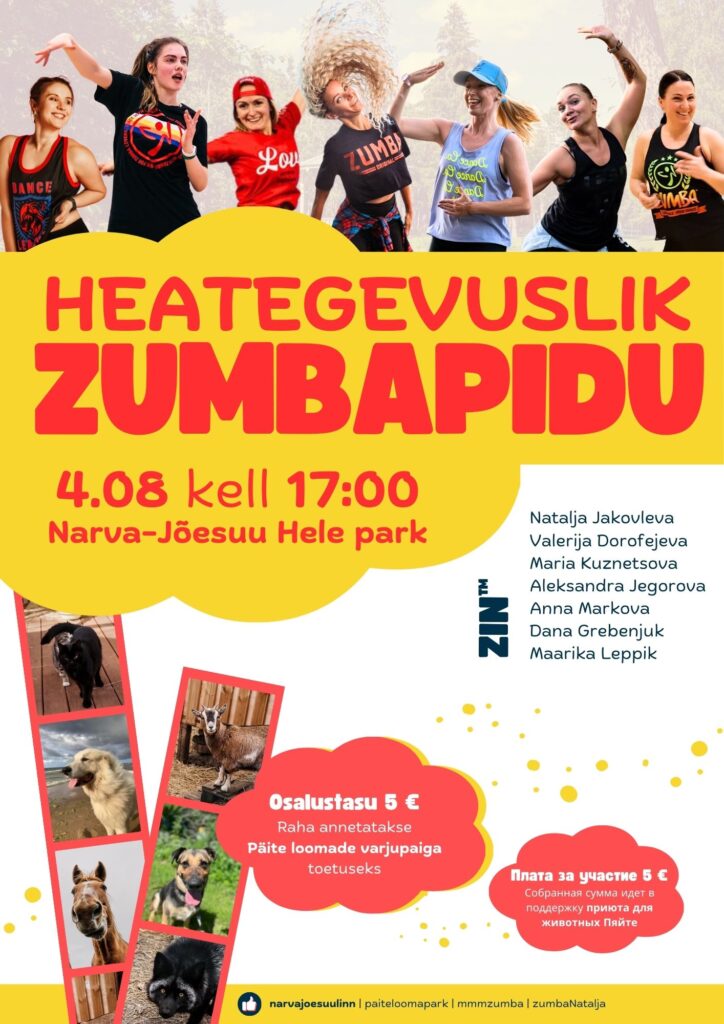 ЧТО? Благотворительный танцевальный зумба-марафон, принять участие в котором смогут все желающие. Все собранные средства пойдут на помощь НКО Ayuda, которые создали и успешно развивают приют для животных Пяйте. Регистрация на марафон будет проходить на месте, а плата за участие, начиная с 5 евро.
