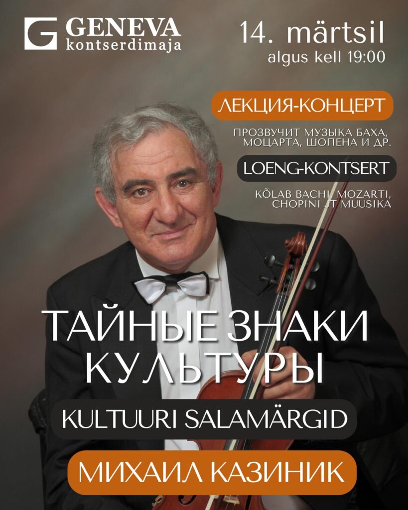 ЧТО? Лекция-концерт Михаила Казиника Тайные знаки культуры. Билет 22-33 €.