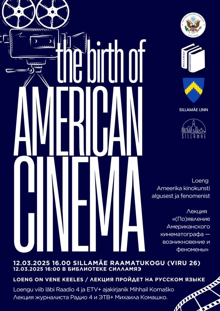 ЧТО? Американский день в Силламяэ. Лекция журналиста Радио 4 и ЭТВ+ Михаила Комашко «(По)явление Американского кинематографа — возникновение и феномены» (на русском языке). Бесплатно. Ранее в тот же день пройдут встречи и кулинарные и спортивные мастер-классы сотрудников Посольства и ассистентов преподавателей английского языка из США для учеников школ и посетителей детских и молодежных центров города.