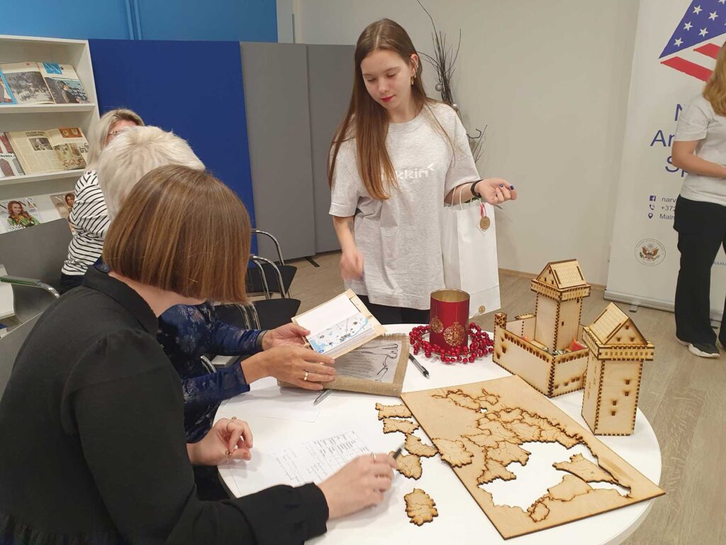 А некоторые из сувениров, которые были придуманы в рамках проекта, будут продаваться на Рождественской ярмарке ученических фирм, которая состоится в торговом центре “Астри” 14 декабря.