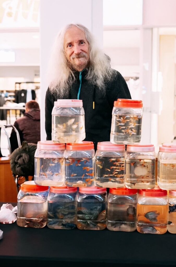 Рыбок он перевозит в банках. И это, пожалуй, первое, что бросается в глаза тем, кто видит его впервые. Но сам он говорит, что условия подбирает под каждый вид отдельно: где-то рыбы находится по одной, где-то — небольшими группами. Всё рассчитывается индивидуально — по объему воды, по поведению, по тому, как быстро его питомцев купят и довезут до домашнего аквариума.