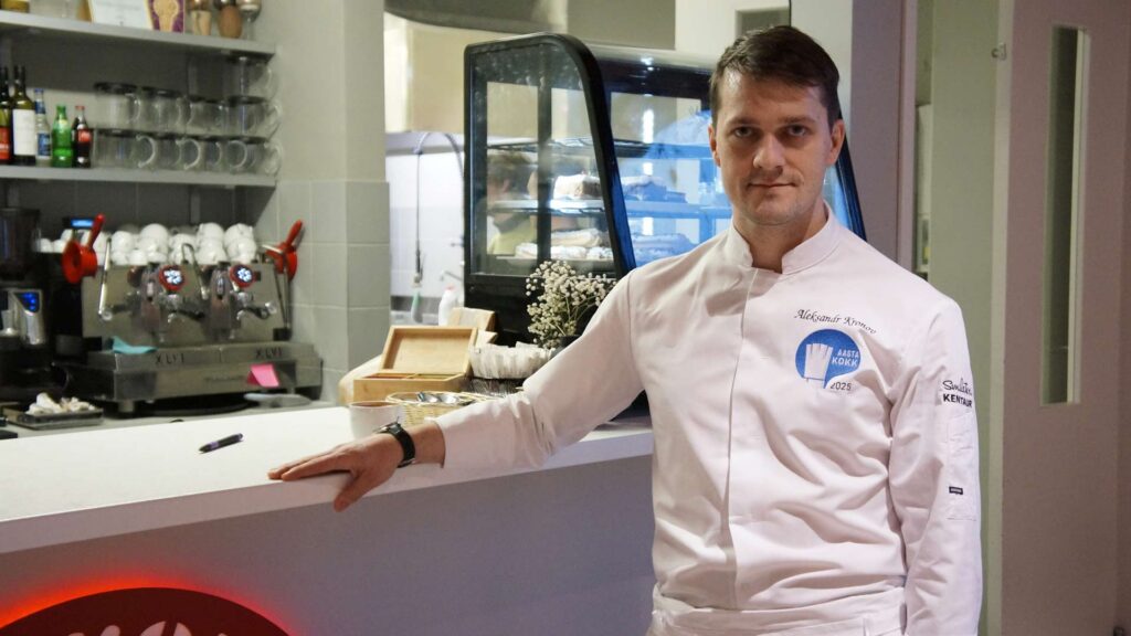 Александр – нарвитянин. Он хотел быть поваром еще в школе и после 9 класса поступил учиться, но через полтора года его отчислили. В следующий раз он попал на кухню через 10 лет, потому что искал работу и подвернулась подходящая вакансия.