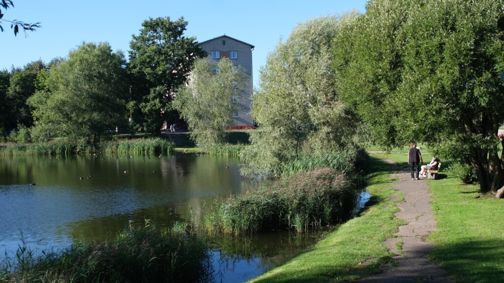 Отличительная особенность проспекта Выйду – это пруд искусственного происхождения. Вечером его прохлада манит людей всех возрастов. К великому сожалению, и тех, кто не заботится о чистоте общественного пространства.
