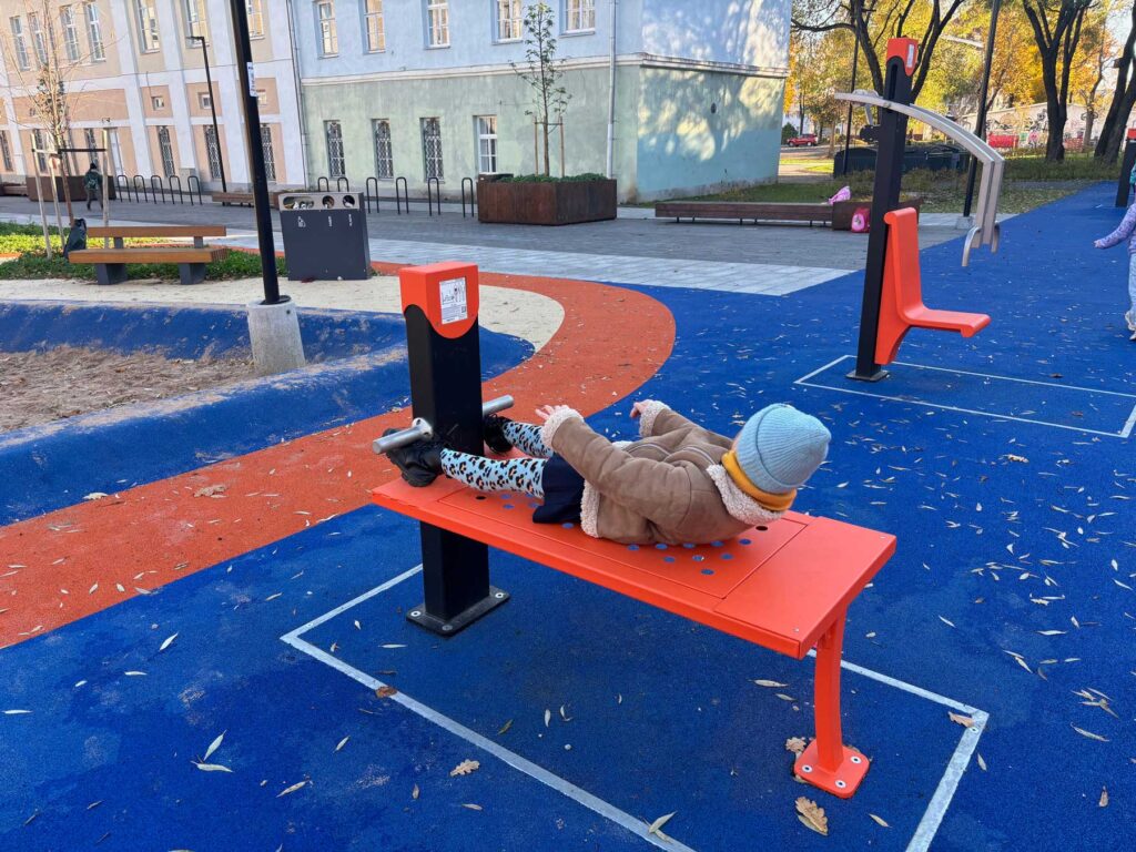 Спортивные тренажеры ярко-оранжевого цвета появились рядом с Эстонским детским садом весной этого года. Нацеленные на занятия физкультурой жители соседних домов воодушевились: вот теперь-то они за себя возьмутся, главное — не лениться!
