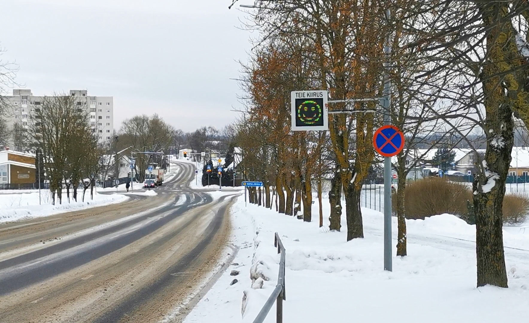 10 февраля на некоторых улицах Нарвы установили табло контроля скорости, призванные привлечь внимание водителей к соблюдению скоростного режима. Устройства считывают скорость транспортных средств, отображают её на экране и с помощью соответствующих смайликов показывают водителю, соблюдает ли он ограничение.