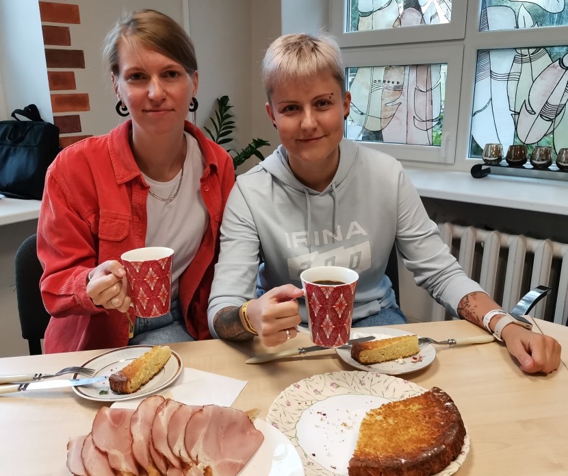 Конечно, завтрак по-нарвски придумали прежде всего для туристов, которые приезжают в Нарву на фестиваль Station Narva. Согласитесь, любопытно ведь заглянуть на чужую кухню, узнать что-то из бытовой культуры нарвитян, может быть, завести новые знакомства, проконсультироваться насчет городских достопримечательностей, маршрутов по городу, познакомиться с кем-то из команды организаторов фестиваля и их партнеров (какими, например, и является Vita Tiim), ну и прочее. Занятно, но на завтрак по-нарвски все чаще приходят и сами нарвитяне. Вот, например, в этом году я повстречала здесь довольно известных широкой местной публике Дениса Ларченко, Женю Зеленскую, Юрия Николаева (в данный момент он был здесь не в должности репортера).