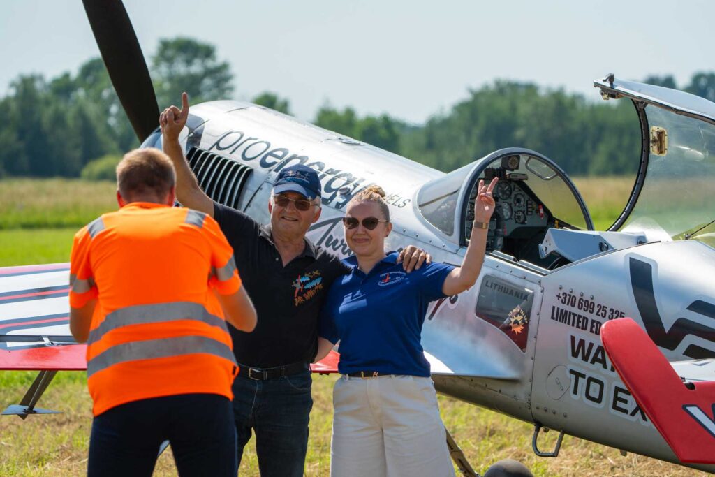 Главной звездой программы стал легендарный литовский лётчик Юргис Кайрис. 73-летний многократный чемпион мира по пилотажу продемонстрировал фигуры такой сложности, что у зрителей захватывало дух. «Он в прекрасной физической форме и творит такие чудеса, которые, думаю, даже более молодые пилоты не выдержали бы физически», — восхищается Орлов.