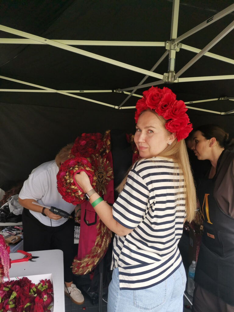И готовится участвовать сегодня, 2 августа, в международном конкурсе флористов “Цветочное платье” в Кадриорге. Планы наполеоновские!