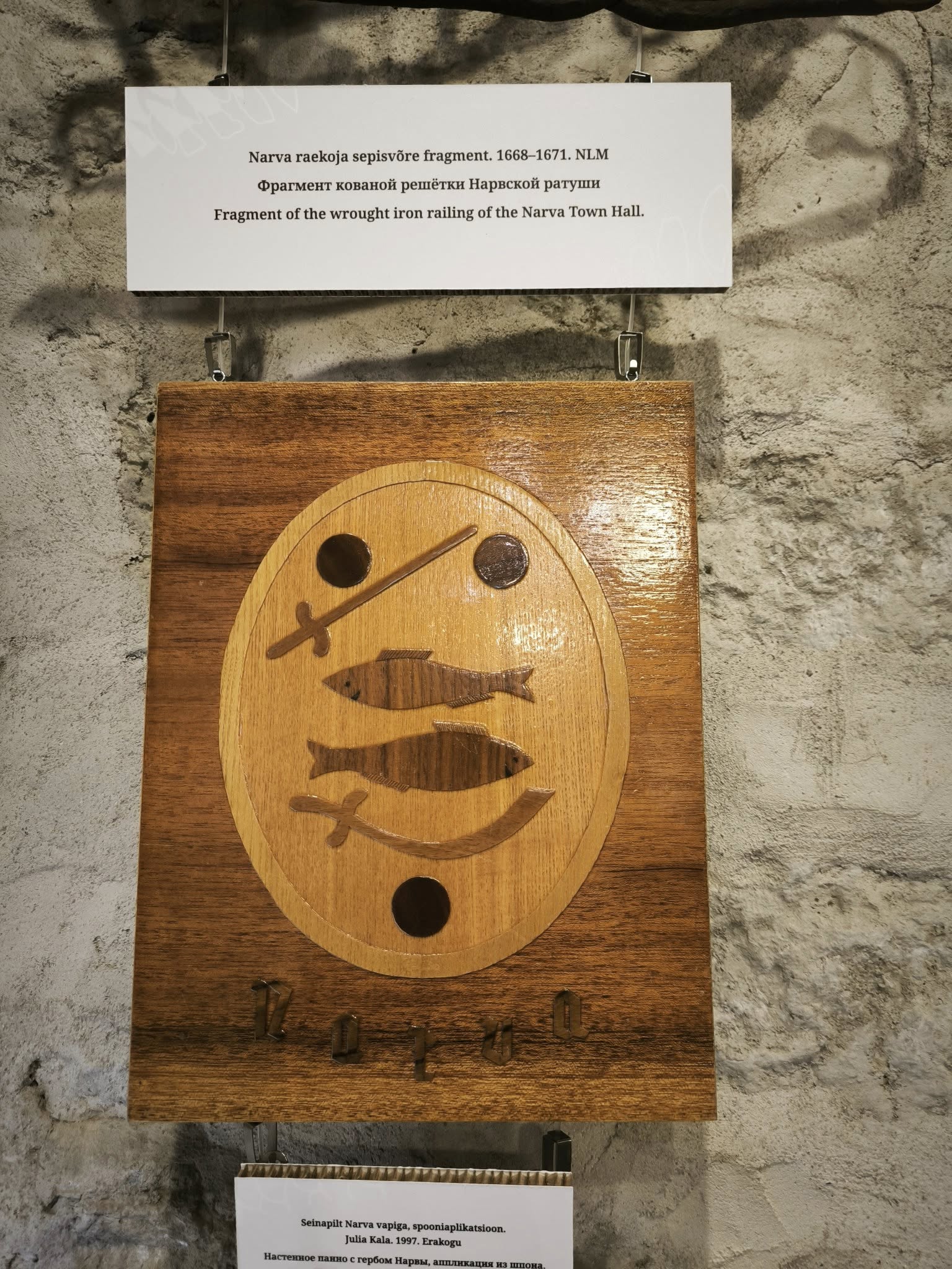Особое внимание уделено визуальной эволюции так называемой «гербовой рыбы» — одного из самых обсуждаемых элементов нарвской символики. Разные поколения горожан по-разному трактовали, что это за рыба: тунец, хариус, лосось или вовсе вымышленный образ. В советский период укоренилось мнение, что это хариус, и он стал появляться на сувенирах, барельефах и даже детских рисунках.
