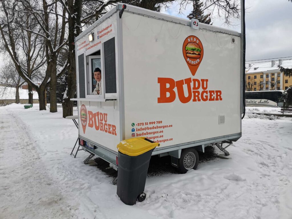Начавший работать с 27 ноября прошлого года фудтрак в двух шагах от Петровской площади Нарвы набирает популярность, и, по словам его владельцев, ежедневно обслуживает от 15 до 20 человек, стоящих в очереди на пересечение границы через погранпункт Нарва-1.
