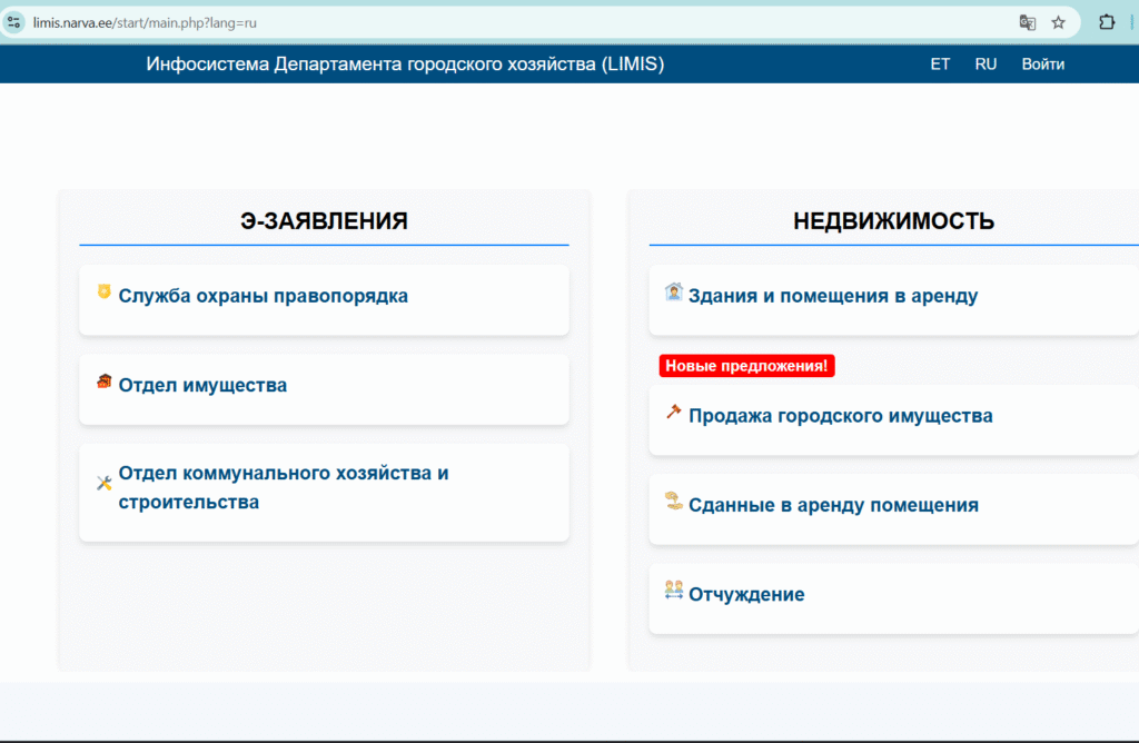 Департамент городского хозяйства Нарвы представил новую систему электронных услуг. Она позволит нарвитянам в режиме онлайн подавать заявления, участвовать в торгах и отслеживать решения чиновников в личном кабинете. В будущем ее планируют дорабатывать и внедрять новые услуги.