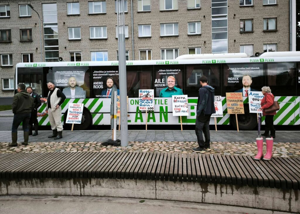 На акцию протеста, организованную политической партией «План B» и избирательным союзом «Пульс города», который прошёл сегодня в Нарве на Ратушной площади, пришли около десятка активистов, сами политики и с десяток представителей прессы.