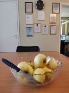 Местные яблоки сегодня можно увидеть не только на рыночных прилавках. У некоторых частных домов они лежат горкой на скамейках или просто на коробках — берите бесплатно.