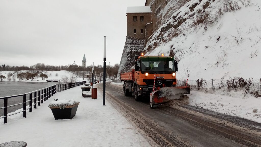 Снег в Нарве убирают две фирмы: Gulib следит за зелёными зонами, N&V – за дорогами и прилегающими к дорогам тротуарами.