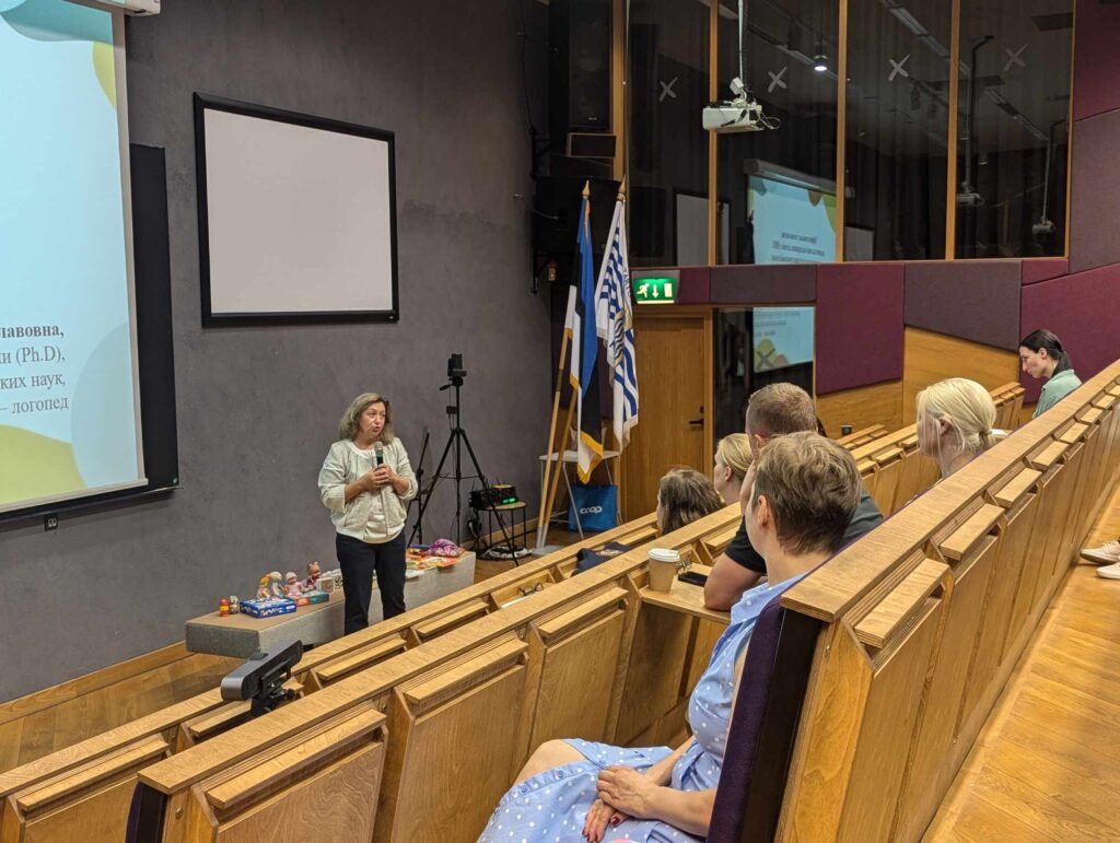 Спецпедагог Марина Вечер рассказала аудитории о простых, но очень важных вещах: как превращать поддержку обучения на эстонском в игру, о важности пения с ребенком, использовании пения в самых разных учебных ситуациях, о том, как поощрять особых детей, радоваться их успехам.