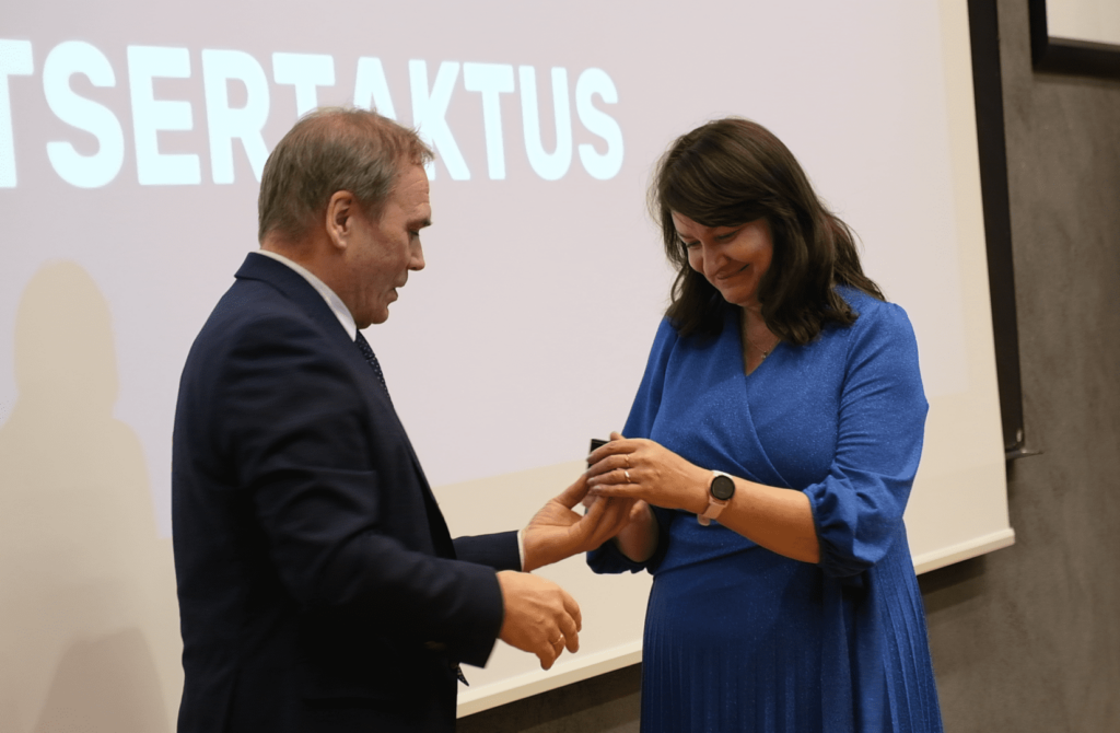 В этот раз такой награды была удостоена Аннеки Теэлахк, заведующая Ида-Вирумааским отделом Эстонской кассы по безработице. Ранее, например, Майт Клаассен, который был министром образования при создании колледжа, получил золотой знак. Награду Аннеки получила на торжественном концерте Нарвского колледжа, посвященном 103-летию эстоноязычного высшего образования и 10-летию открытия здания колледжа. Празднование состоялось в среду, 30 ноября.