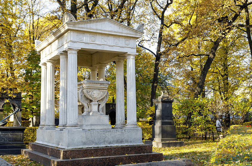 Старинное Лазаревское кладбище в Санкт-Петербурге, ныне Некрополь XVIII в., было в своё время самым привилегированным в Петербурге. Для захоронения там требовалось личное разрешение императора. Сейчас на территории Лавры несколько некрополей, на одном из них, Некрополе мастеров искусств, похоронены выдающиеся деятели культуры России: М. Глинка, Ф. Достоевский, В. Комиссаржевская, М. Мусогорский, П.Чайковский. В 1935-1937 годах кладбище приобрело статус мемориального парка.