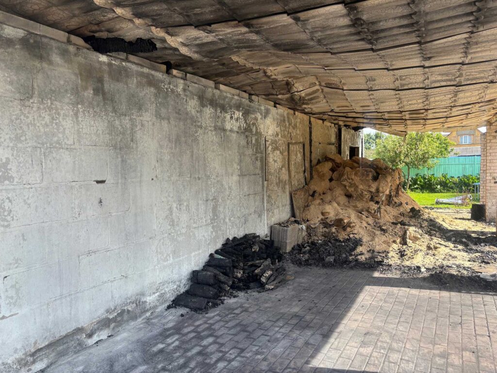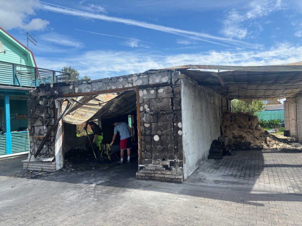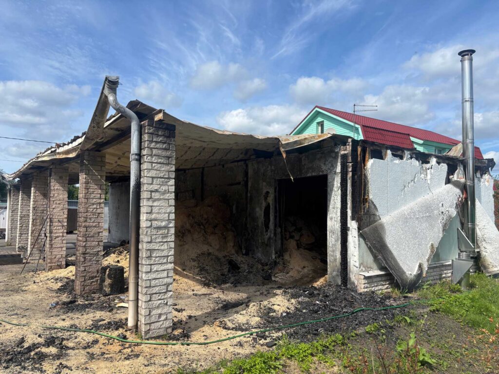 Эта строение было разбито на несколько помещений: гараж (машина при пожаре сгорела), мастерская, где у главы семьи, строителя по профессии, хранились инструменты и устройства, в третьем отсеке находились два отопительных котла, они также сгорели полностью.