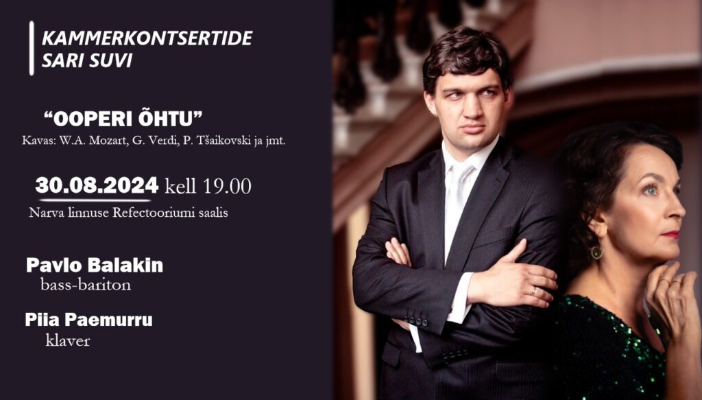 Серия камерных концертов “Лето” завершится “Оперным вечером”, который пройдёт сегодня, 30 августа, в 19.00 в зале Refectorium Нарвского замка.