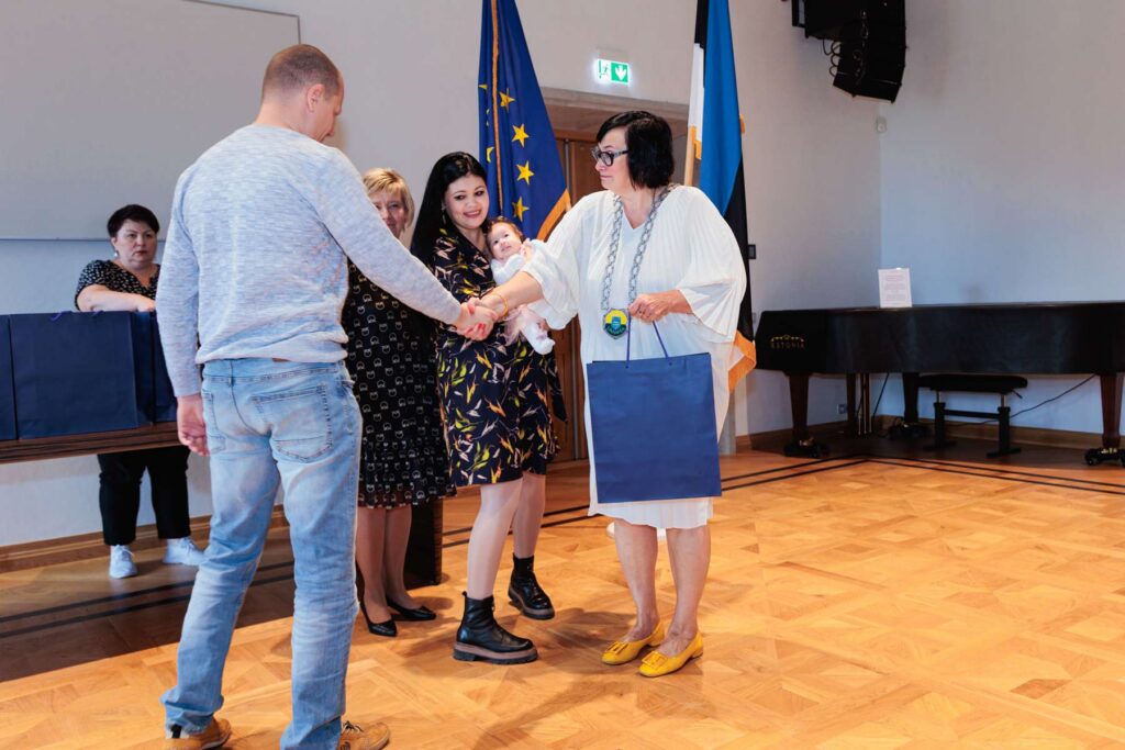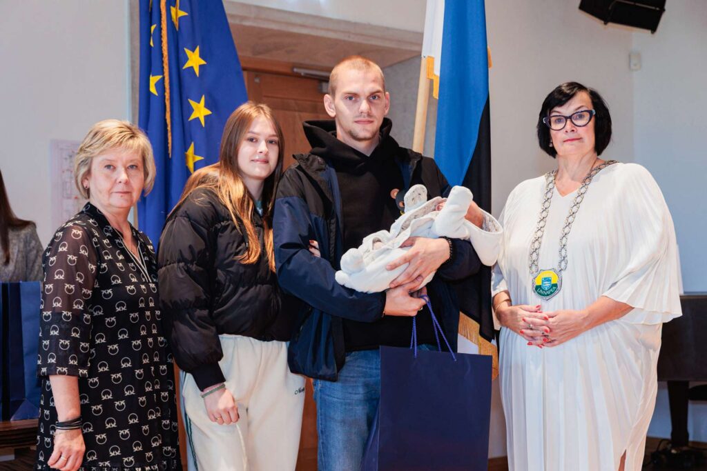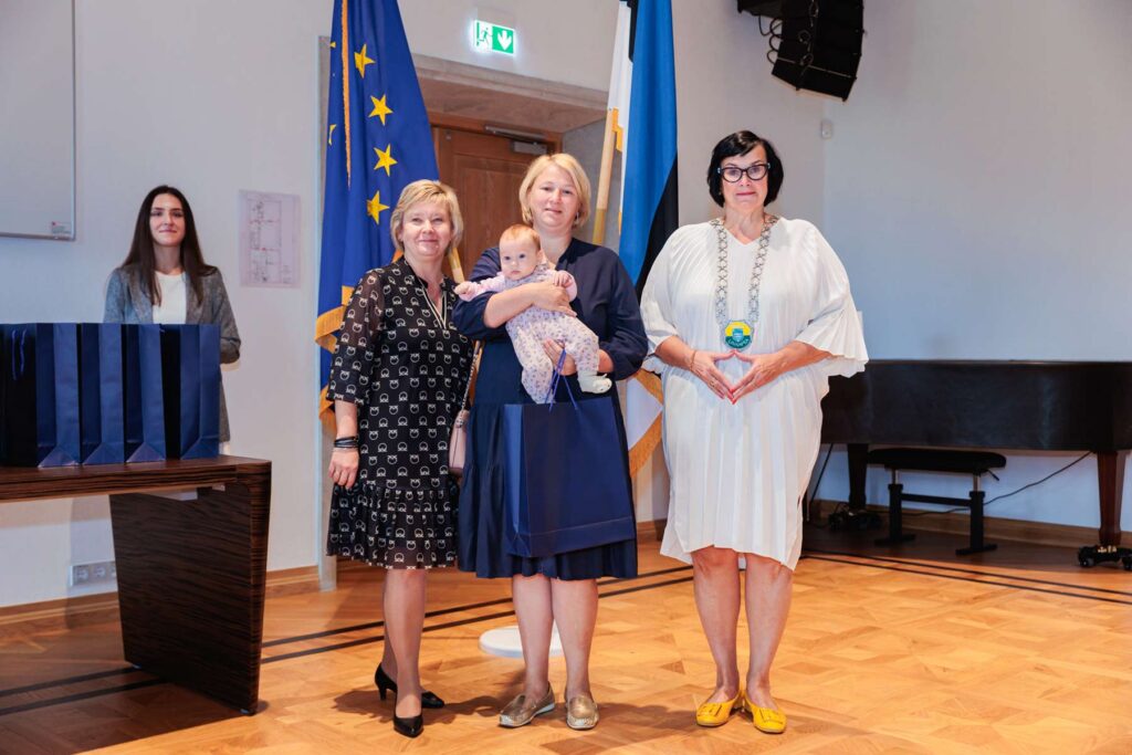 Мэр Катри Райк и председатель городского собрания Татьяна Стольфат вручили семьям памятные подарки и пожелали детям расти в любви, а родителям — радости и вдохновения.