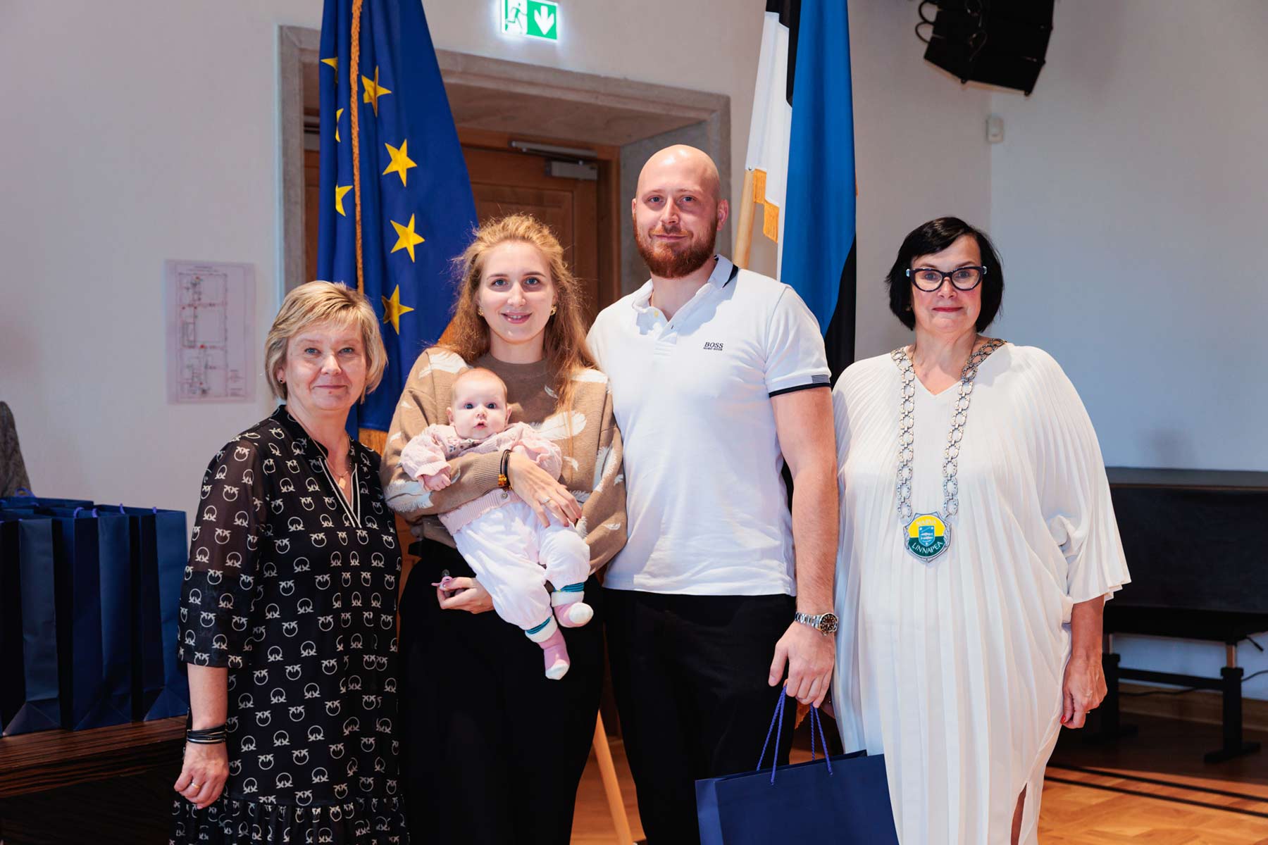 Мэр Катри Райк и председатель городского собрания Татьяна Стольфат вручили семьям памятные подарки и пожелали детям расти в любви, а родителям — радости и вдохновения.