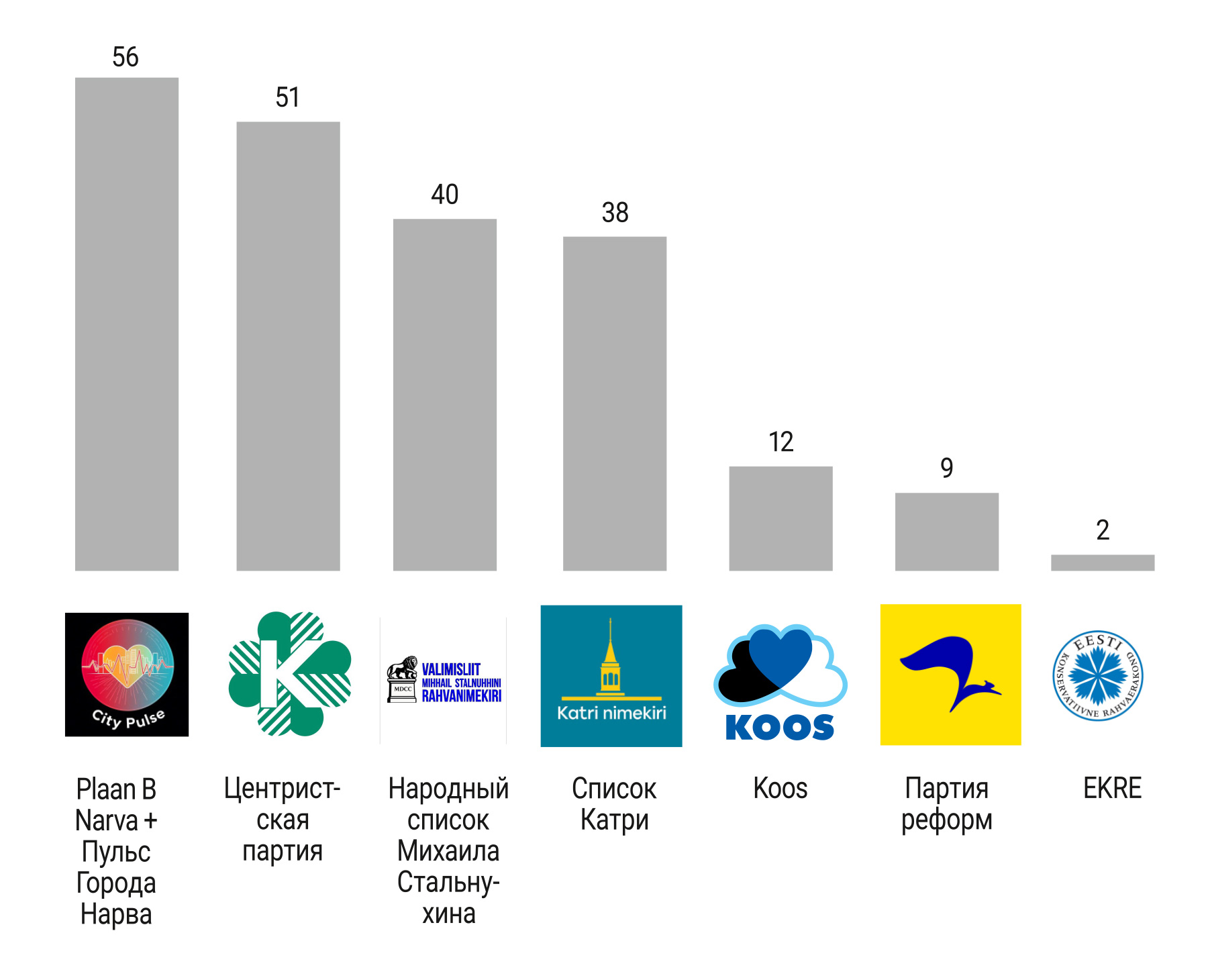 Абсолютным рекордсменом по числу кандидатов стал объединенный список «Plaan B Narva» и «Пульс города», выставивший сразу 56 фамилий. На другом полюсе — EKRE с лишь двумя кандидатами.