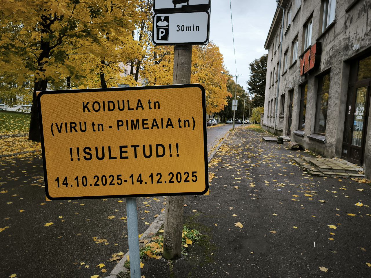 На этой неделе в Тёмном саду было перекрыто движение по улицам Пимеайа и Виру в районе старого города. Здесь начались работы по прокладке ливневой канализации и строительству сброса в реку Нарова. По плану работ улицы будут перекрыты до 14 декабря.