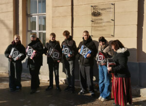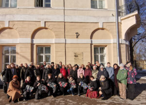 Мемориальную доску открывают профессор Тартуского университета, представитель Тартуского университета в главном комитете Года книги Эстонии Арне Мерилай и преподаватель Нарвского колледжа Тартуского университета, организатор конференции “Пограничная правда и право” Энда Трубок. Фото: Светлана Зайцева