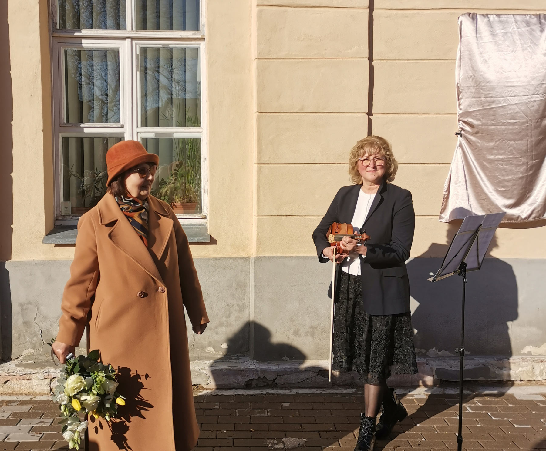 Мемориальную доску открывают профессор Тартуского университета, представитель Тартуского университета в главном комитете Года книги Эстонии Арне Мерилай и преподаватель Нарвского колледжа Тартуского университета, организатор конференции “Пограничная правда и право” Энда Трубок. Фото: Светлана Зайцева