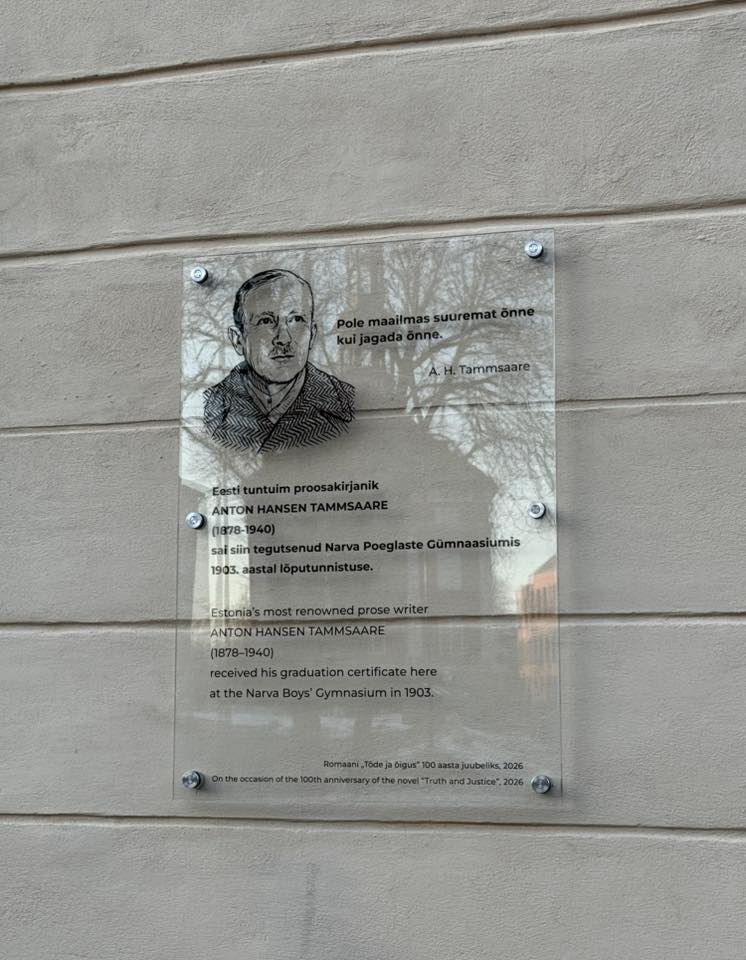 Сегодня, в пятницу, 6 марта, в Нарве в торжественной и теплой атмосфере, с музыкой и цветами, состоялось открытие мемориальной доски классику эстонской литературы Антону Хансену Таммсааре.