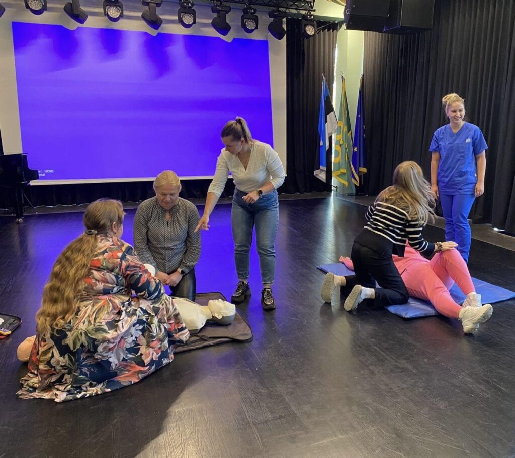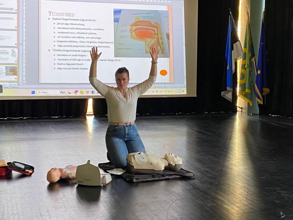 В этом году представитель городской больницы Анастасия Горшкова в Нарвской Эстонской гимназии также дала педагогам, участникам мероприятия «Твои руки спасают жизнь», практические рекомендации по реанимации человека в случае внезапной остановки сердца.