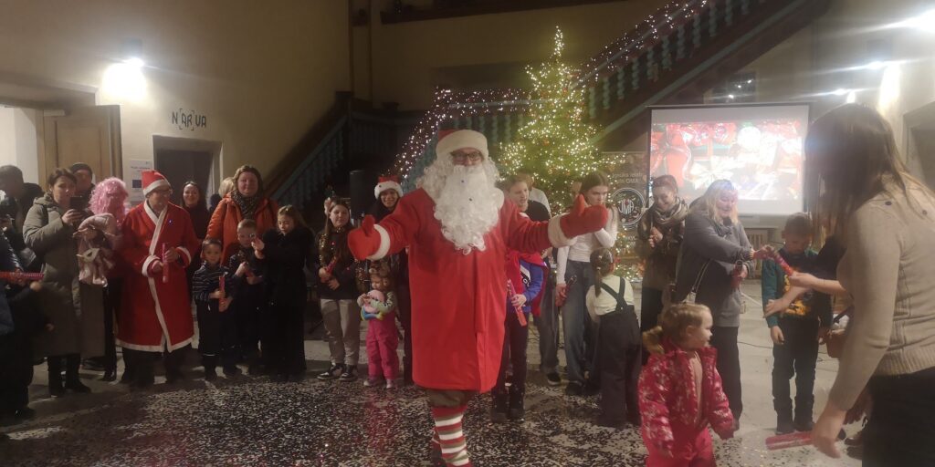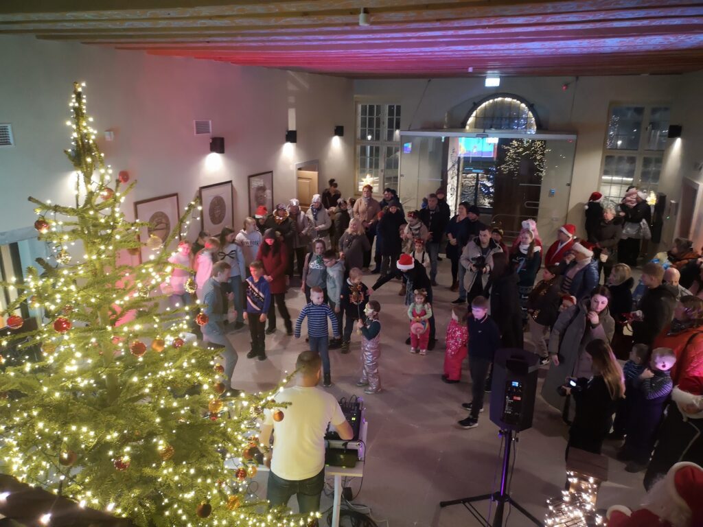 Завершилась работа Рождественской деревни в воскресенье вечером праздничным диско-маскарадом для всей семьи. Поскольку на улице снова была совсем не праздничная погода, наряженных гостей пригласили в здание Ратуши, где они повеселились у елки и получили подарки от Йыулувана.
