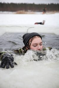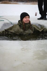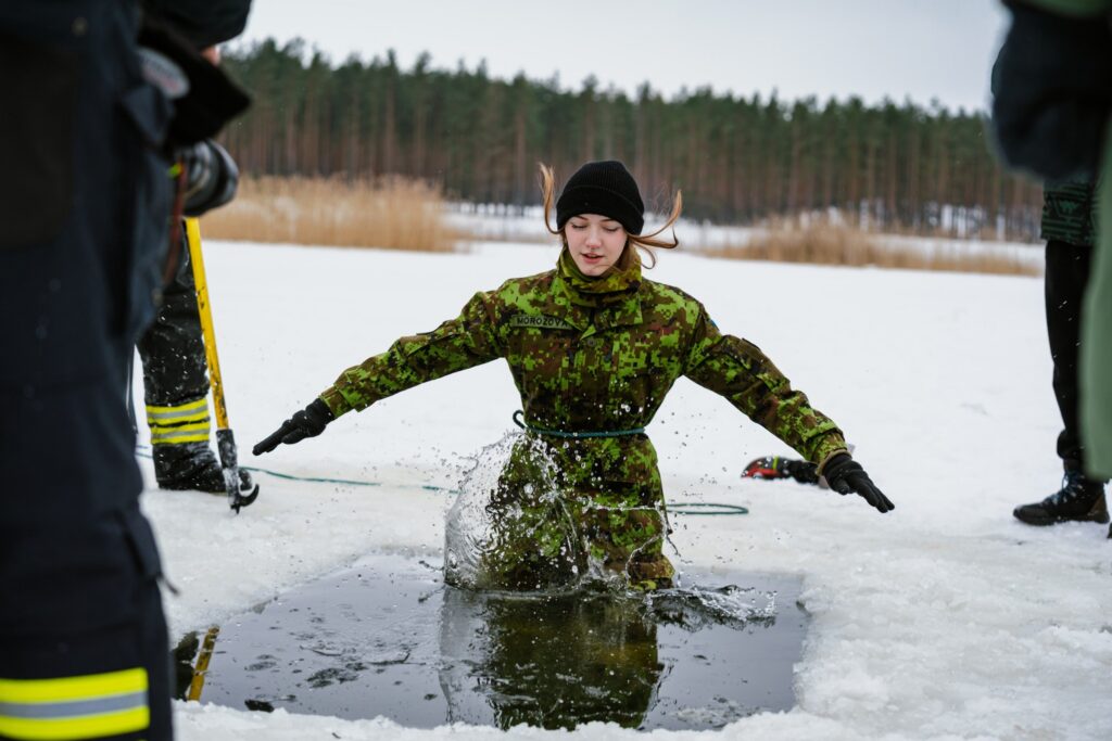 “ Хоть условия и контролируемые, но первое впечатление – это, конечно, настоящий шок. Мы ныряли в прорубь в обычной одежде, что имитирует внезапное попадание под лед”, – рассказал “Нарвской газете” молодежный инструктор Кайтселийта Владислав Эглет.