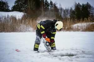 В зимний период велик риск провалиться под лед. Касается это и малых, и крупных водоемов – зачастую ледовая обстановка на них бывает неясной, и риск может быть довольно велик. Учения по поведению в таких ситуациях провел Спасательный департамент на карьере Рийгикюла. В тренировке также участвовали представили Кайтселийта.