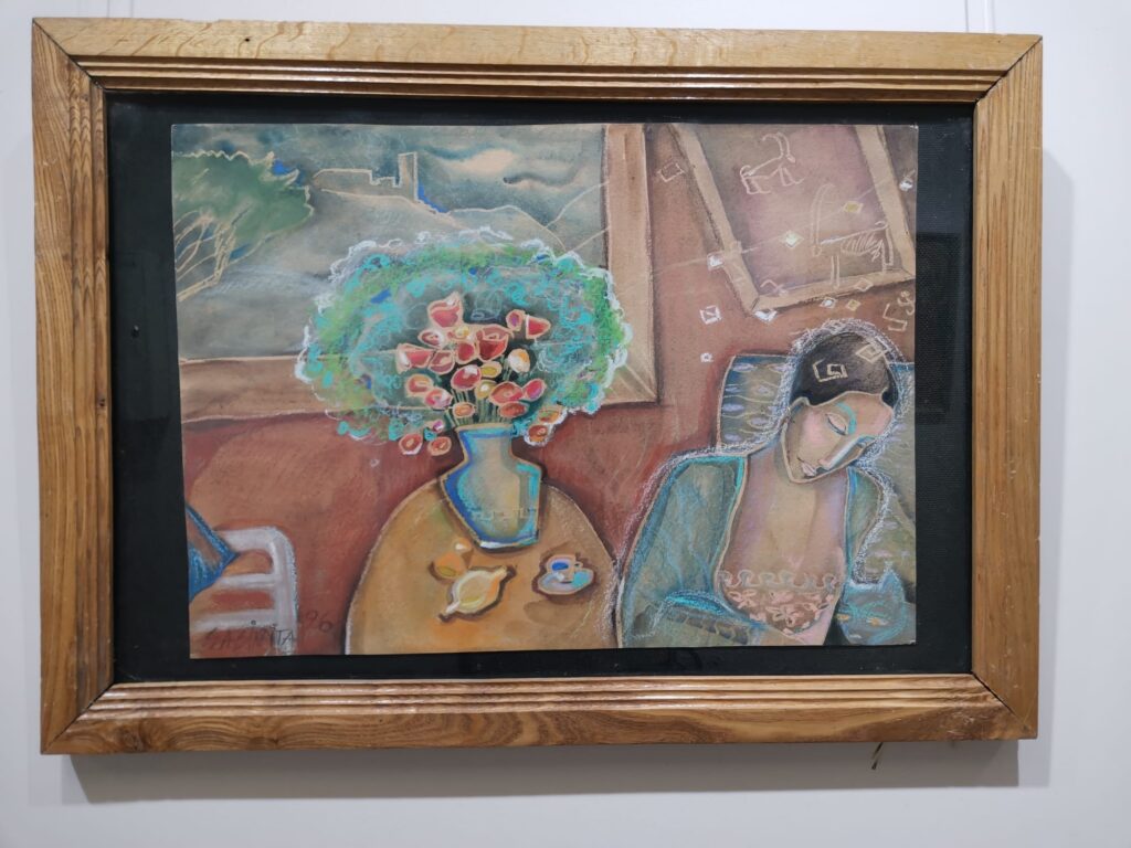 На выставке представлены картины, созданные Еленой в разное время. И в этом — особая ценность: они словно фиксируют внутренние состояния художницы, её путь. Есть здесь и картины, написанные на кренгольмских тканях, например, на сарже. Этот материал — не просто художественный эксперимент, а часть личной биографии. «Какое-то время я работала на Кренгольме и даже была стипендиатом Кренгольма – планировалось, что стану художницей по тканям. Но театр меня переманил», – рассказала Елена вашему корреспонденту. По своей основной профессии Елена Сабинина – театральный режиссер, закончила Ленинградский институт культуры. И, на мой взгляд, это чувствуется в её живописи: в композициях, в драматургии цвета, в напряжении между персонажами и пространством. Каждая работа — как сцена, в которой зрителю отводится важная роль.