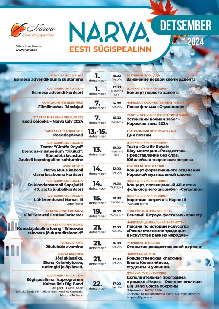 В Нарве церемония впервые пройдёт на Ратушной площади, где уже установили и нарядили Рождественскую ель. Зажжение свечи пройдёт в 16:00.
