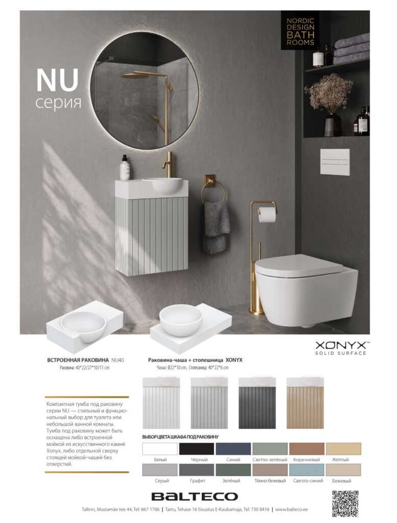 Balteco производит всю свою продукцию в Эстонии и предлагает широкий выбор качественных и стильных решений для ванных комнат, объединяя инновационный дизайн и современные технологии. В ассортимент входят ванны, душевые решения, паровые сауны, мебель для ванных комнат, раковины и мини-бассейны — всё для создания роскошного уюта в вашей ванной.