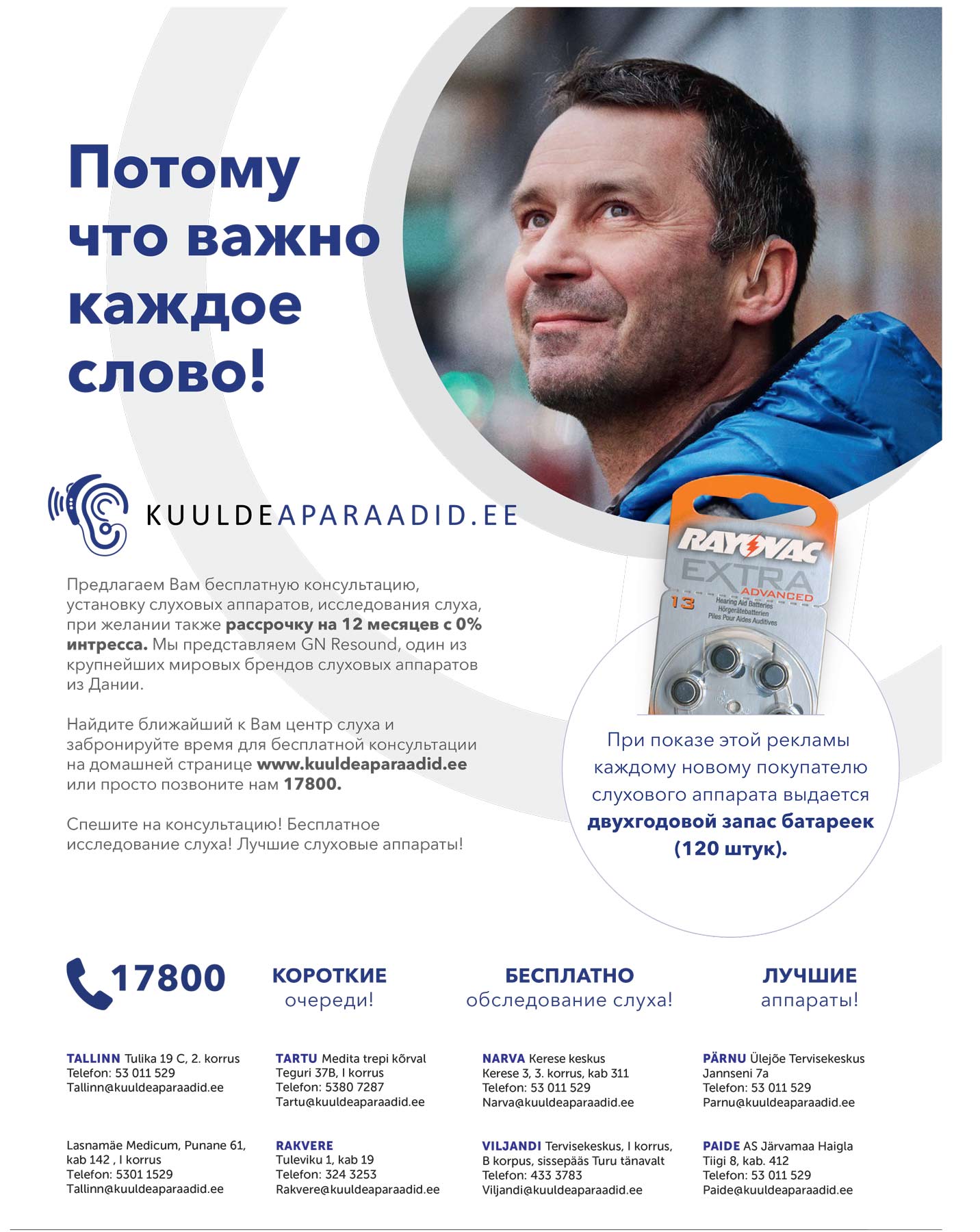 Kuuldeaparaadid.ee предлагает Вам бесплатную консультацию, установку слуховых аппаратов, исследование слуха, при желании также рассрочку на 12 месяцев с 0% интресса.