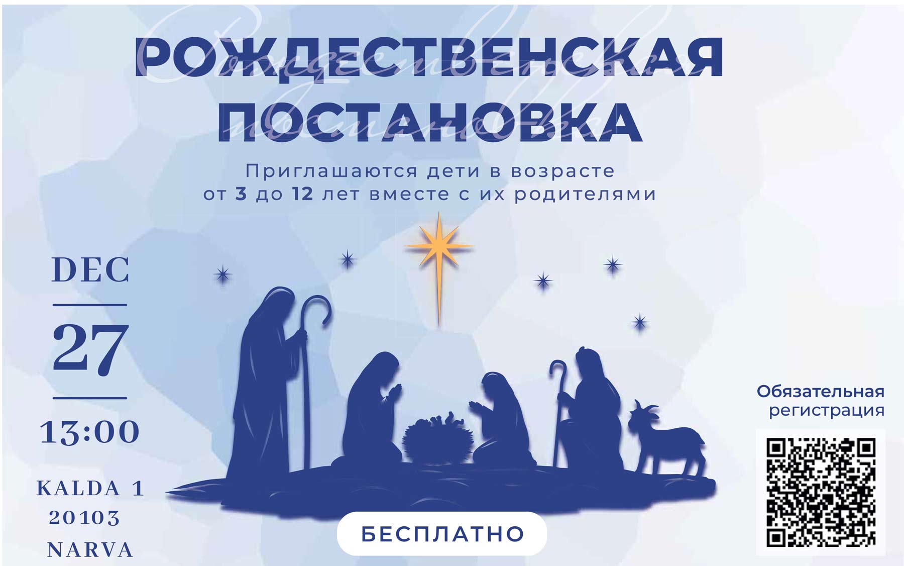 детскую рождественскую постановку, которая пройдёт в Нарве на Калда, 1 27 декабря в 13:00.