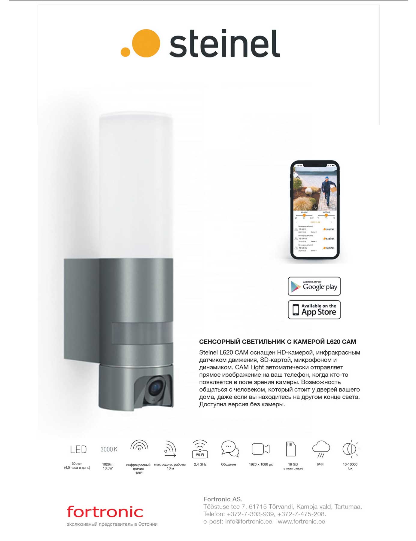 Steinel L 620 CAM освещает пространство и фиксирует всё происходящее благодаря встроенной камере. Узнайте больше о возможностях умного светильника на Fortronic.ee.