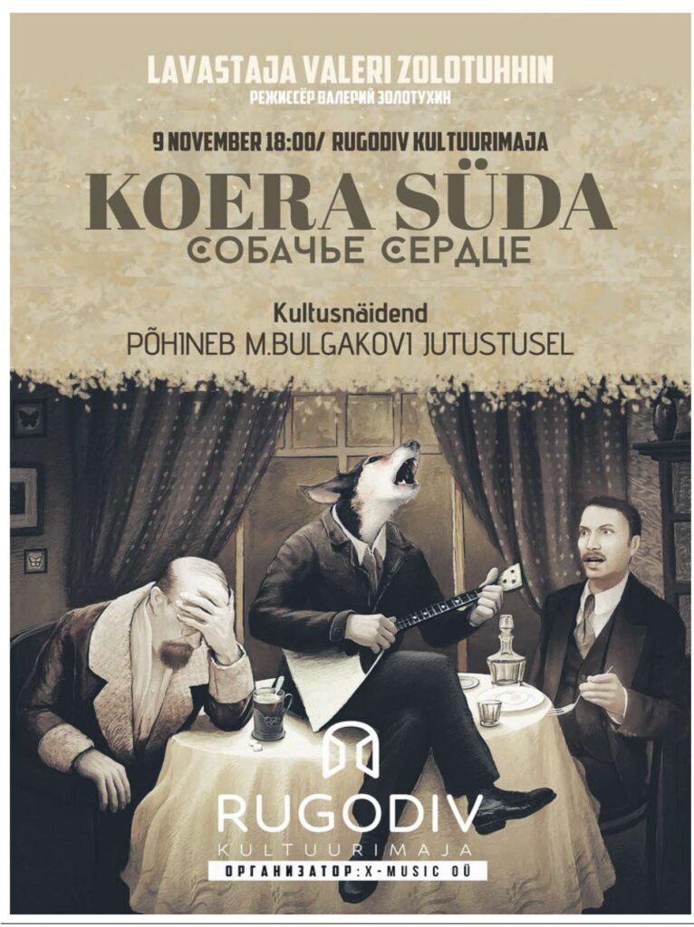 Cпектакль «Собачье сердце» по повести Михаила Булгакова, в постановке Валерия Золотухина пройдёт в Доме культуры 9 ноября в 18:00.