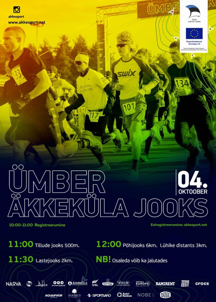 4 октября в спортивном центре Äkkeküla состоится традиционный забег вокруг Äkkeküla, который пройдёт по трассам спортивного парка и велосипедным дорожкам комплекса.
