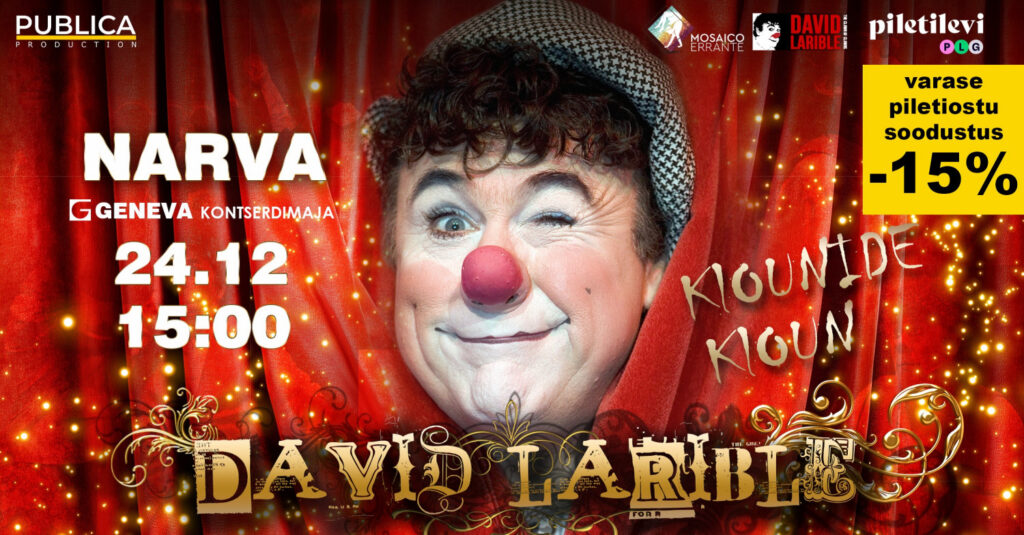 К сожалению, спектакль «David Larible. Клоун клоунов», который должен был состояться в Нарве 24 декабря, отменяется, и билеты будут возвращены.
