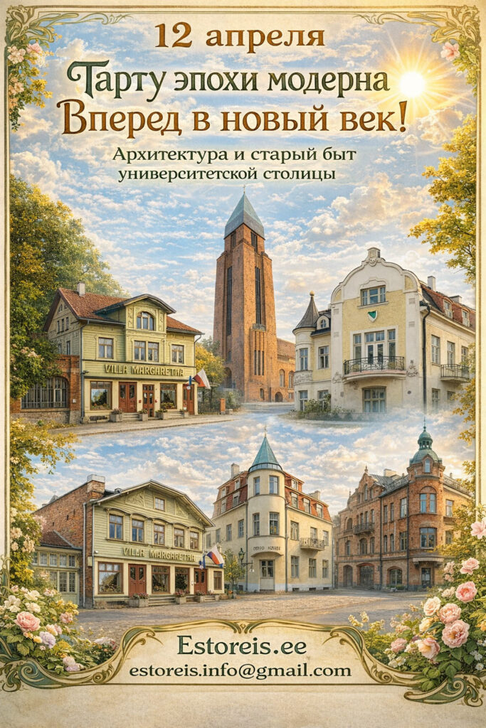 12 апреля поездка «Тарту эпохи модерна: вперед в новый век! Архитектура и старый быт университетской столицы с Алексеем Шишкиным».
