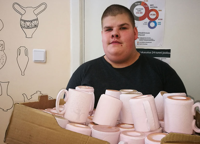 Как обеспечить людей с особыми потребностями работой? Познакомьтесь с тем, как подопечные нарвской некоммерческой организации “Защищенная жизнь” (MTÜ Kaitstud Elu) создают керамические сувенирные кружки, которые потом идут на продажу туристам.