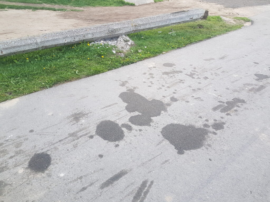 А вот интересно, делали ли это работники, убирающие столбы, и известно ли о таком массовом пролитии масла на городской асфальт чиновникам из Нарвской горуправы, отвечающим за качество работ при замене нового освещения?