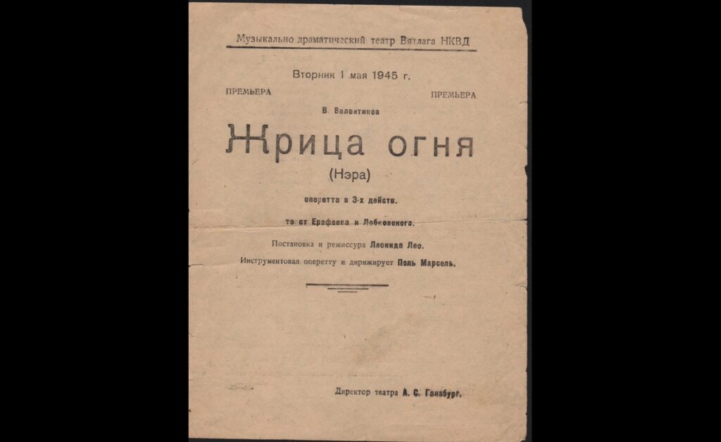 К первому мая 1945 года готовилась к выпуску оперетта Валентинова «Жрица огня», большой красочный спектакль из жизни востока, с обязательными в таких случаях одалисками, тайнами гарема, разношерстной экзотической толпой, характерными восточными танцами, эротической музыкой.